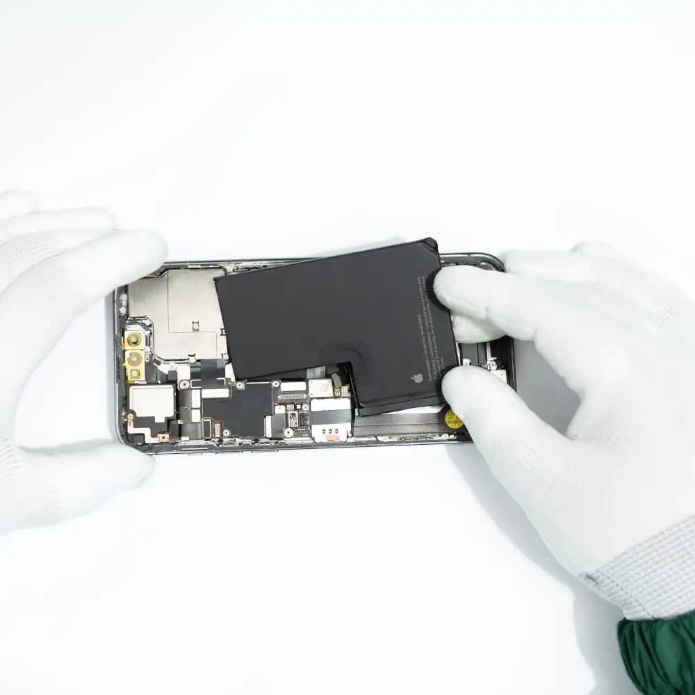 Wymiana baterii iPhone 17e pozwala przywrócić pełną wydajność i długi czas pracy telefonu. Z biegiem czasu pojemność akumulatora spada, dlatego, jeśli Twój iPhone rozładowuje się zbyt szybko lub nie ładuje się prawidłowo, warto zlecić montaż nowej baterii. Wymieniamy baterie na nowe, oryginalne oraz wysokiej jakości zamienniki o pojemności znamionowej 4005 mAh. Zastosowany rodzaj ogniwa to Li‑Ion, gwarantujący długą żywotność i stabilną wydajność. Każda wymiana baterii iPhone 17e objęta jest 6‑miesięczną gwarancją, a podczas naprawy nie usuwamy danych zapisanych w telefonie. Działamy szybko – napraw już w godzinę w naszym serwisie stacjonarnym w Chorzowie lub wysyłkowo od 3 dni roboczych. Po montażu nowej baterii zalecamy przestrzeganie kilku zasad, które zapewnią jej maksymalną trwałość. Nie należy rozładowywać telefonu do zera, warto natomiast naładować baterię kilka razy do pełna. Takie cykle ładowania stabilizują jej pojemność i znacząco wydłużają czas pracy i żywotność akumulatora.